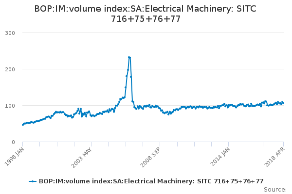 Download this time seriesBOP:IM:volume index:SA:Electrical Machinery: SITC 716+75+76+77