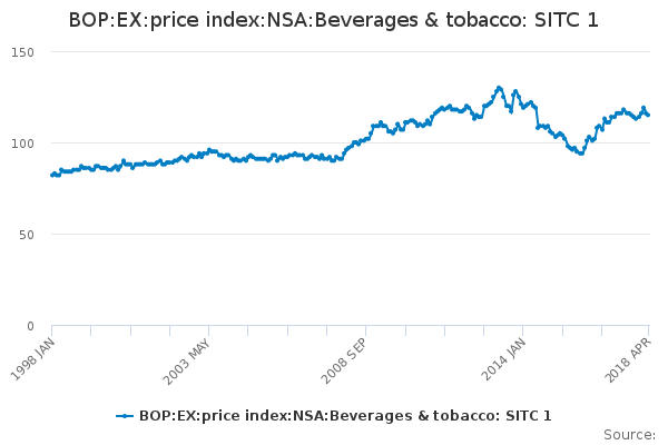 Download this time seriesBOP:EX:price index:NSA:Beverages & tobacco: SITC 1