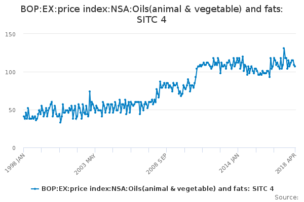 Download this time seriesBOP:EX:price index:NSA:Oils(animal & vegetable) and fats: SITC 4