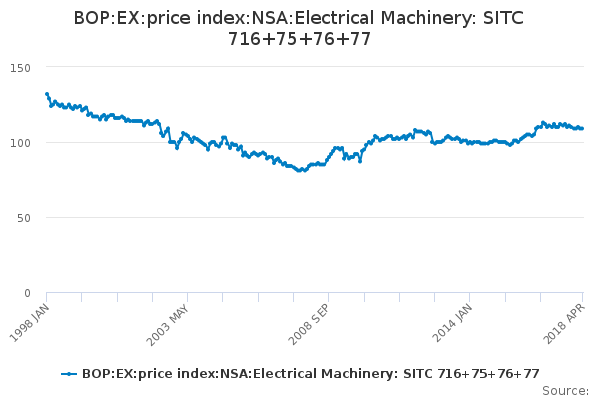 Download this time seriesBOP:EX:price index:NSA:Electrical Machinery: SITC 716+75+76+77