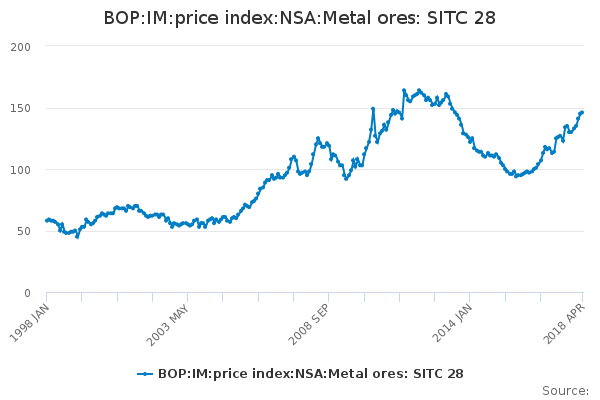 Download this time seriesBOP:IM:price index:NSA:Metal ores: SITC 28
