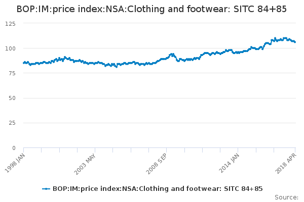 Download this time seriesBOP:IM:price index:NSA:Clothing and footwear: SITC 84+85
