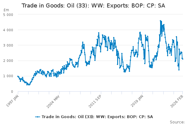 Download this time seriesTrade in Goods: Oil (33): WW: Exports: BOP: CP: SA