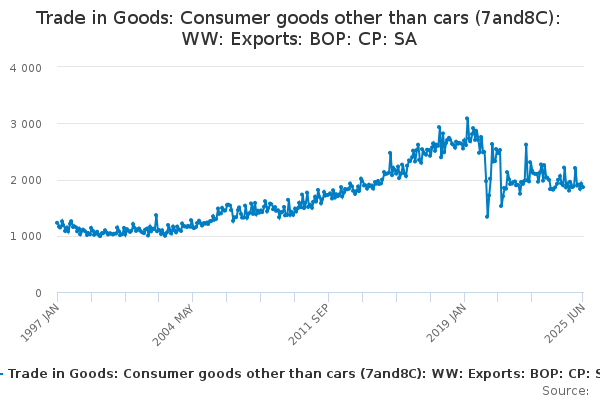 Download this time seriesTrade in Goods: Consumer goods other than cars (7and8C): WW: Exports: BOP: CP: SA