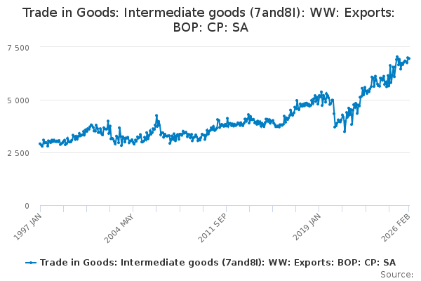 Download this time seriesTrade in Goods: Intermediate goods (7and8I): WW: Exports: BOP: CP: SA