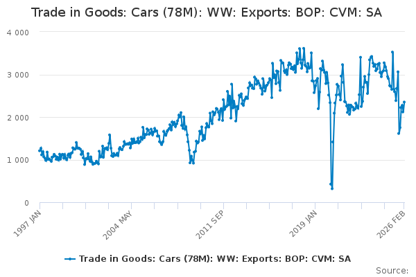 Download this time seriesTrade in Goods: Cars (78M): WW: Exports: BOP: CVM: SA
