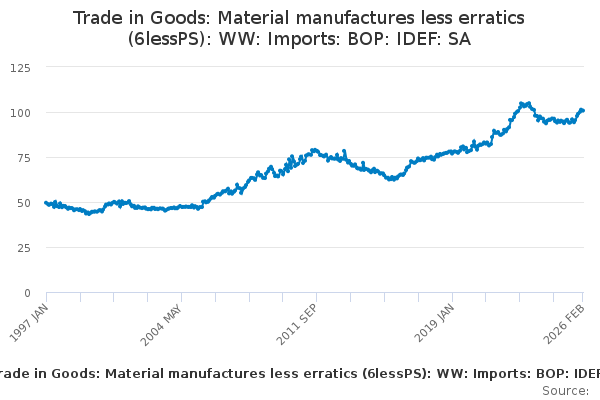 Download this time seriesTrade in Goods: Material manufactures less erratics (6lessPS): WW: Imports: BOP: IDEF: SA