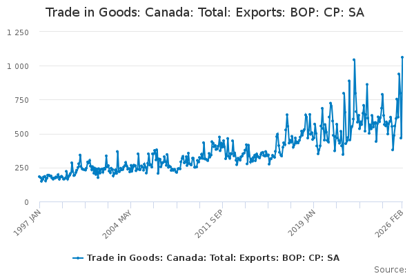 Download this time seriesTrade in Goods: Canada: Total: Exports: BOP: CP: SA