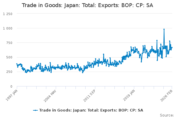 Download this time seriesTrade in Goods: Japan: Total: Exports: BOP: CP: SA