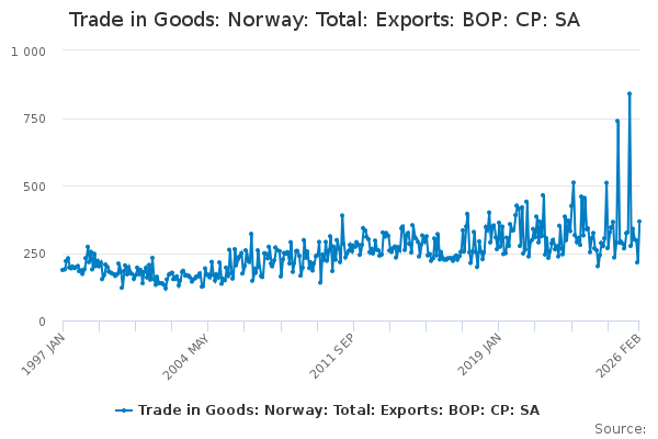 Download this time seriesTrade in Goods: Norway: Total: Exports: BOP: CP: SA