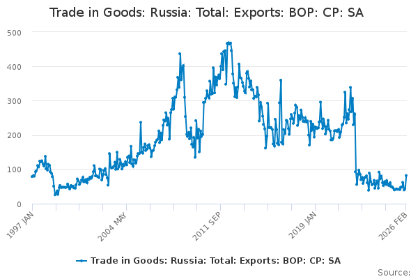 Download this time seriesTrade in Goods: Russia: Total: Exports: BOP: CP: SA