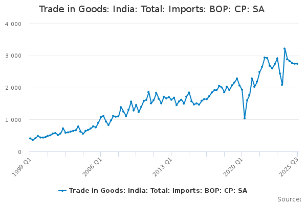 Download this time seriesTrade in Goods: India: Total: Imports: BOP: CP: SA