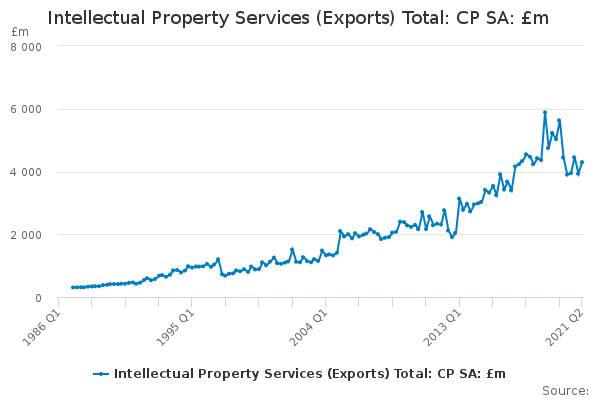 Download this time seriesIntellectual Property Services (Exports) Total: CP SA: £m