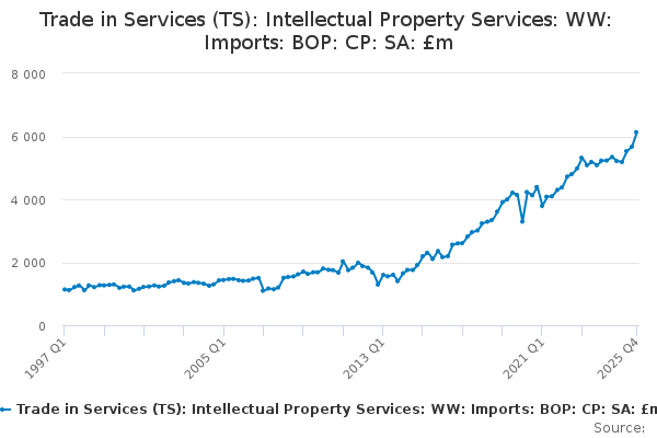 Download this time seriesTrade in Services (TS): Intellectual Property Services: WW: Imports: BOP: CP: SA: £m