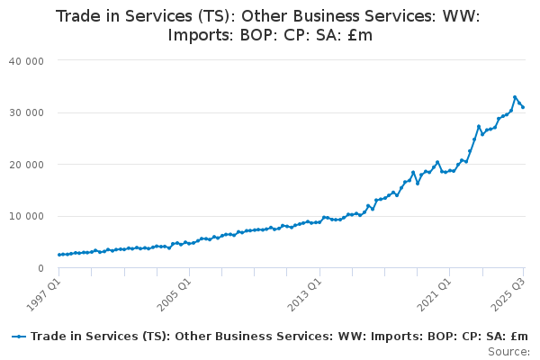 Download this time seriesTrade in Services (TS): Other Business Services: WW: Imports: BOP: CP: SA: £m