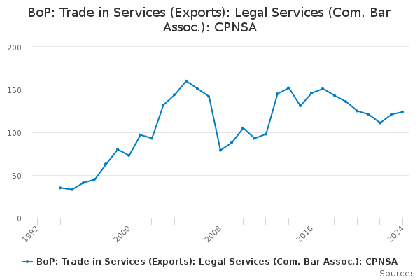 Download this time seriesBoP: Trade in Services (Exports): Legal Services (Com. Bar Assoc.): CPNSA