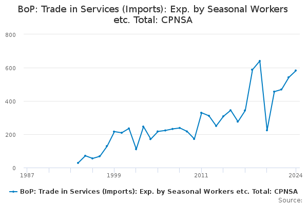 Download this time seriesBoP: Trade in Services (Imports): Exp. by Seasonal Workers etc. Total: CPNSA