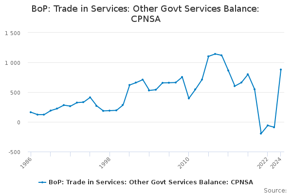 Download this time seriesBoP: Trade in Services: Other Govt Services Balance: CPNSA