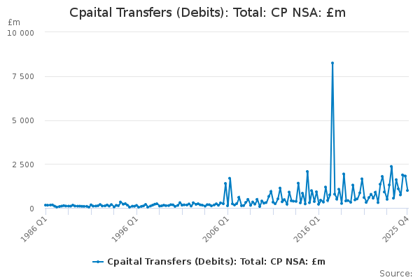 Download this time seriesCpaital Transfers (Debits): Total: CP NSA: £m
