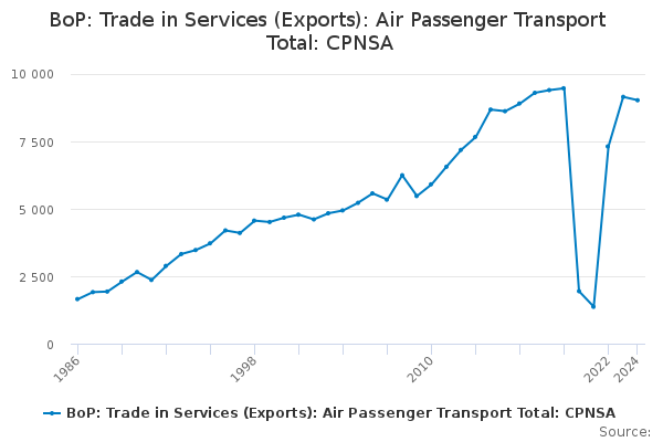 Download this time seriesBoP: Trade in Services (Exports): Air Passenger Transport Total: CPNSA
