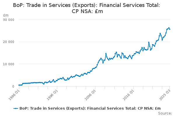 Download this time seriesBoP: Trade in Services (Exports): Financial Services Total: CP NSA: £m