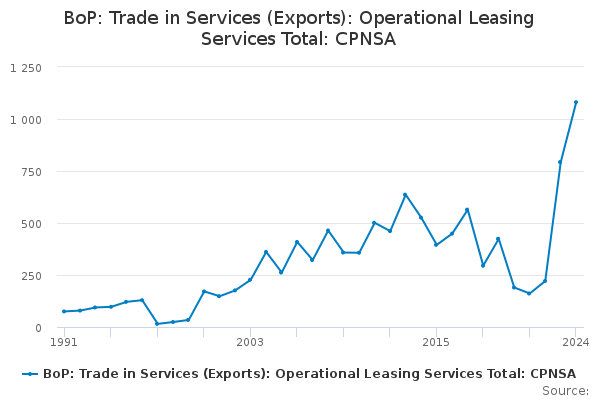Download this time seriesBoP: Trade in Services (Exports): Operational Leasing Services Total: CPNSA