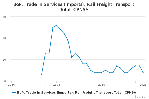 Download this time seriesBoP: Trade in Services (Imports): Rail Freight Transport Total: CPNSA