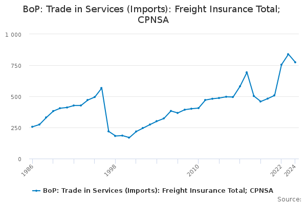 Download this time seriesBoP: Trade in Services (Imports): Freight Insurance Total; CPNSA