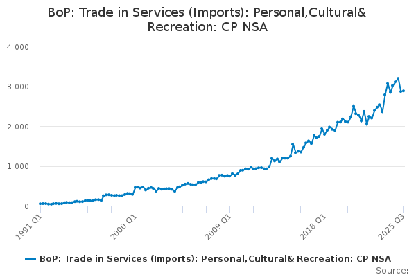 Download this time seriesBoP: Trade in Services (Imports): Personal,Cultural& Recreation: CP NSA