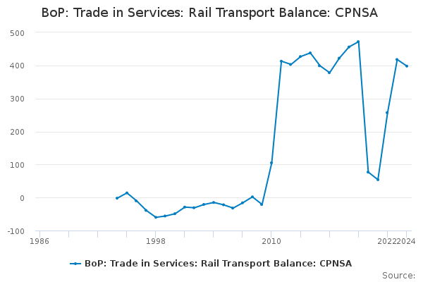 Download this time seriesBoP: Trade in Services: Rail Transport Balance: CPNSA