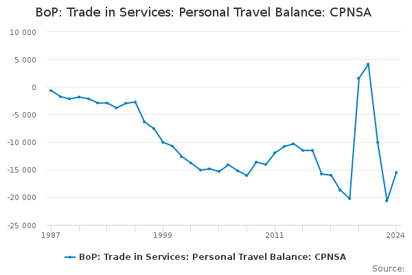 Download this time seriesBoP: Trade in Services: Personal Travel Balance: CPNSA