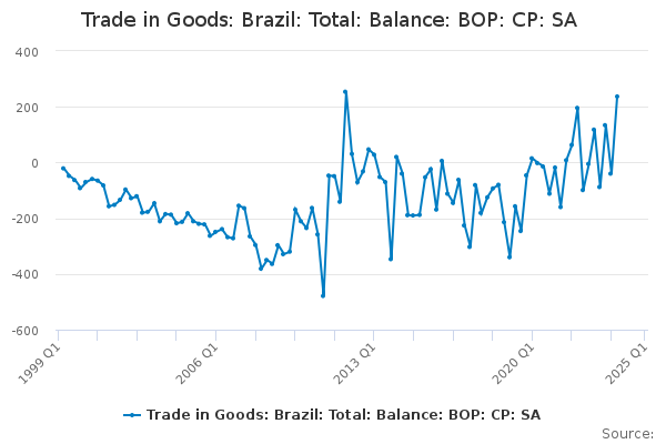 Download this time seriesTrade in Goods: Brazil: Total: Balance: BOP: CP: SA