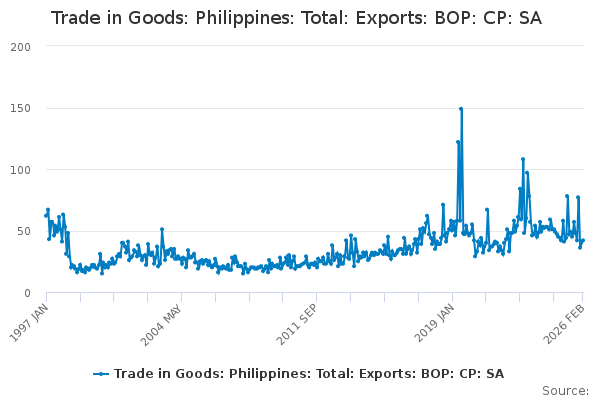 Download this time seriesTrade in Goods: Philippines: Total: Exports: BOP: CP: SA