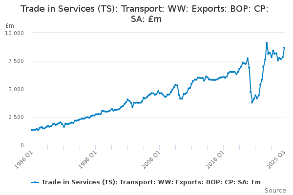 Download this time seriesTrade in Services (TS): Transport: WW: Exports: BOP: CP: SA: £m