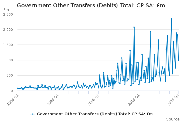 Download this time seriesGovernment Other Transfers (Debits) Total: CP SA: £m