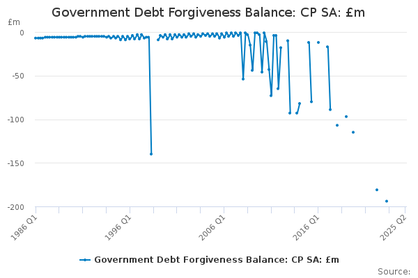Download this time seriesGovernment Debt Forgiveness Balance: CP SA: £m