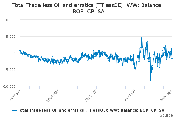 Download this time seriesTotal Trade less Oil and erratics (TTlessOE): WW: Balance: BOP: CP: SA