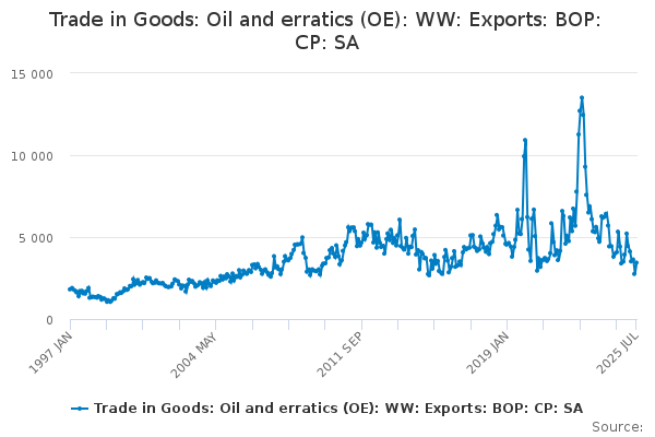 Download this time seriesTrade in Goods: Oil and erratics (OE): WW: Exports: BOP: CP: SA