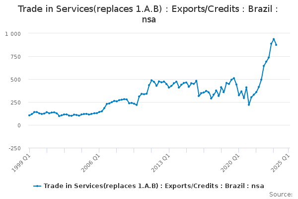 Download this time seriesTrade in Services(replaces 1.A.B) : Exports/Credits : Brazil : nsa