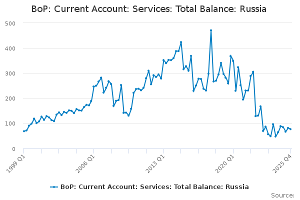 Download this time seriesBoP: Current Account: Services: Total Balance: Russia