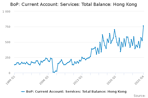 Download this time seriesBoP: Current Account: Services: Total Balance: Hong Kong