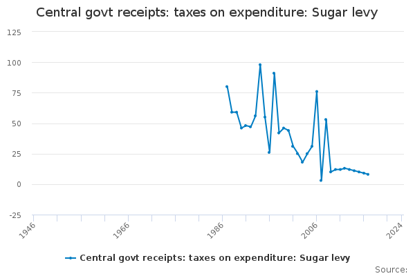 Download this time seriesCentral govt receipts: taxes on expenditure: Sugar levy