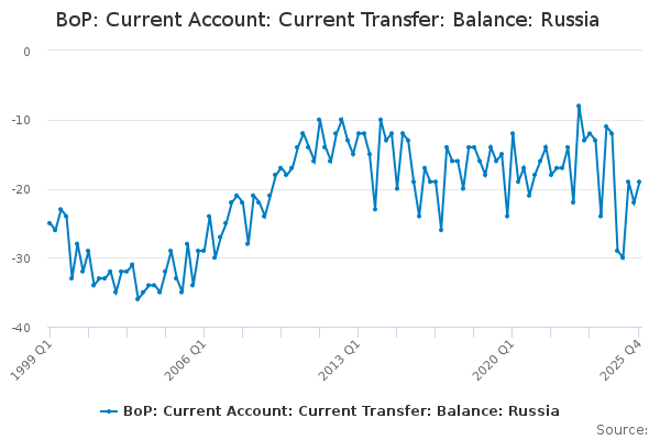 Download this time seriesBoP: Current Account: Current Transfer: Balance: Russia