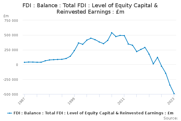 Download this time seriesFDI : Balance : Total FDI : Level of Equity Capital & Reinvested Earnings : £m