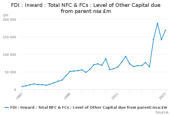 Download this time seriesFDI : Inward : Total NFC & FCs : Level of Other Capital due from parent:nsa:£m