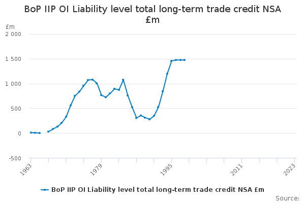 Download this time seriesBoP IIP OI Liability level total long-term trade credit NSA £m