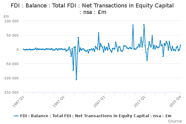 Download this time seriesFDI : Balance : Total FDI : Net Transactions in Equity Capital : nsa : £m