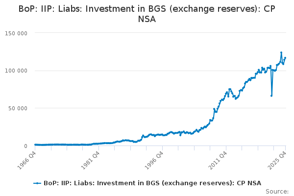 Download this time seriesBoP: IIP: Liabs: Investment in BGS (exchange reserves): CP NSA