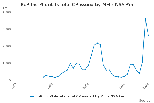 Download this time seriesBoP Inc PI debits total CP issued by MFI's NSA £m