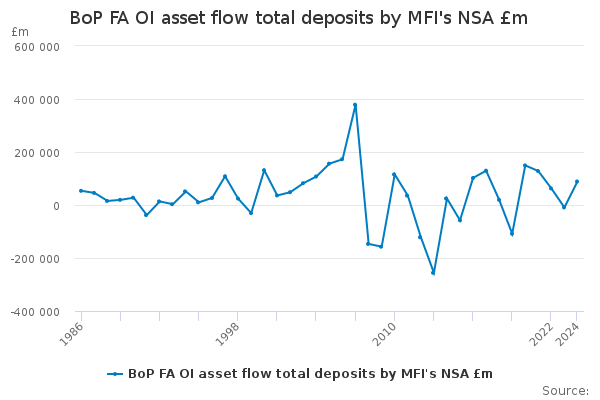 Download this time seriesBoP FA OI asset flow total deposits by MFI's NSA £m